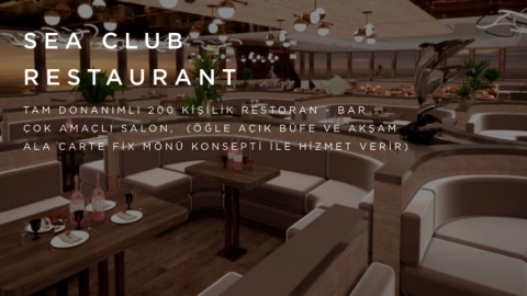 SEA CL UB RES T A URANT TA M D O N A N I M L I 2 0 0 K İ Ş İ L İ K R E S T O R A N - B A R ÇO K A M A Ç L I S A L O N , ( Ö Ğ L E A Ç I K B Ü F E V E A K Ş A M ALA CAR TE F İ X MÖNÜ K ONSEPT İ İ LE H İ ZMET VER İ R)